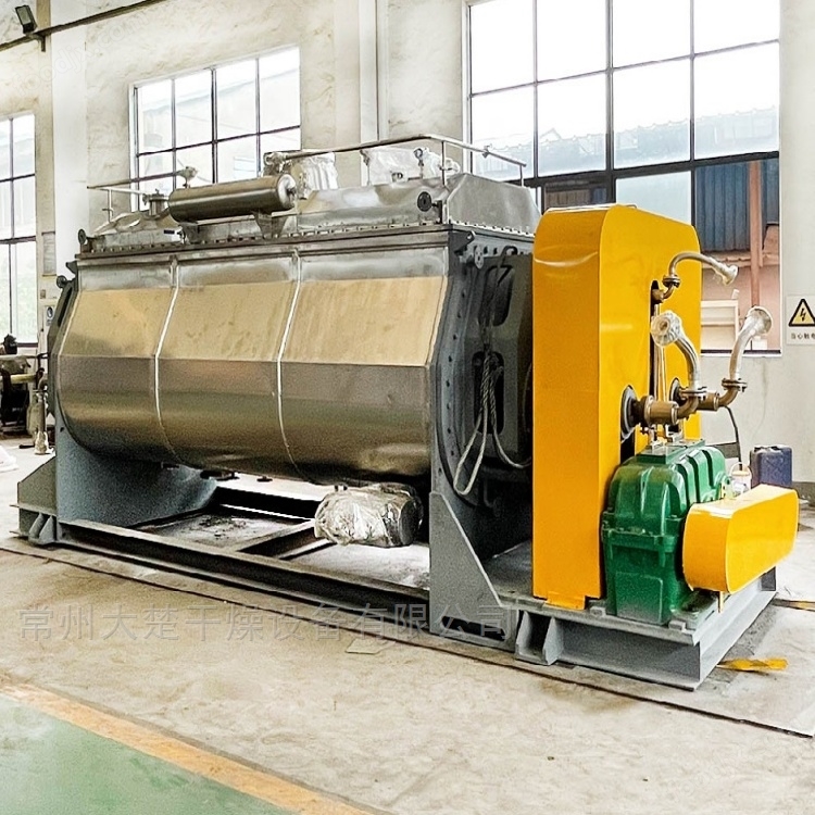 Hollow spiral particle vacuum dryerBy using a specially designed hollow spiral inside the device, the flow state of materials and their residence time inside the device can be controlled. The main components of the equipment include: spindle (hollow), spiral blades (hollow), wall surface (semi tubular), etc; The shell is W-shaped, and two hollow spiral shafts are generally arranged inside the shell; The shell has sealed end caps and upper caps to prevent material dust leakage and fully exert its function. According to the temperature requirements of the material, different media can be selected for heating, such as hot water, steam, and thermal oil. The heat transfer medium flows through the shell jacket and hollow spiral shaft through the rotary joint. The characteristics of heat transfer, cooling, and stirring of the equipment enable it to perform the following unit operations: drying (solvent recovery), heating (melting), cooling, and mixing. The material input can be fed continuously or in batches through a dedicated feeding device, and the residence time of the material can be controlled by operating the speed of the screw to achieve the final drying goal.
